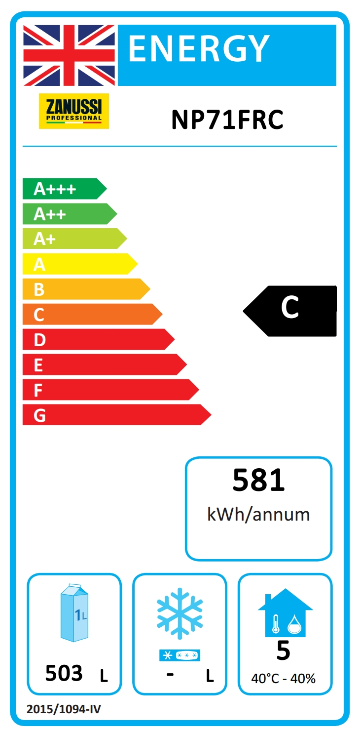 Armadio certificato di classe A in condizioni di lavoro pesante (40°C - 40% di umidità) secondo le direttive Europee di Ecodesign. Il risparmio energetico fino a 300 €/anno si ottiene confrontando i frigoriferi e freezer della classe G con quelli equivalenti della classe A (costo energetico di 0,21 €/kWh e volume netto di 503 lt).
